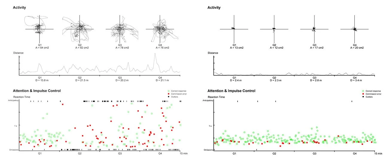 QbCheck involves a 15 or 20-minute computer-based task that measures your (or your child’s) ability to maintain attention and impulse control. Meanwhile, an your computer’s camera tracks movements, and therefore activity, during the test. The results are based on a comparison of your (or your child’s) performance with data from other people of the same sex and age who do not have ADHD.